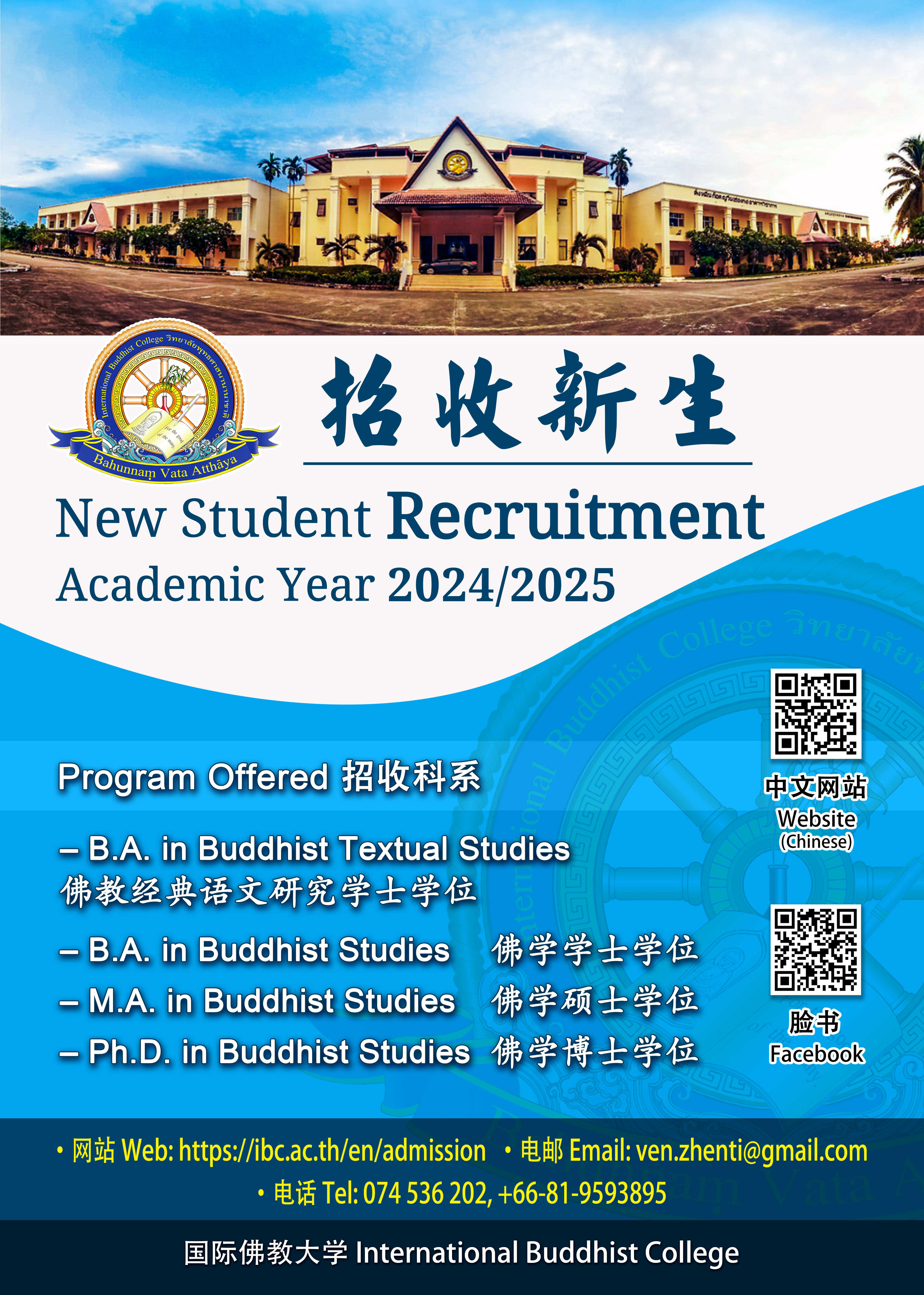 Application for B.A., M.A. and Ph.D. in Buddhist Studies are now open until 31 March 2024.
