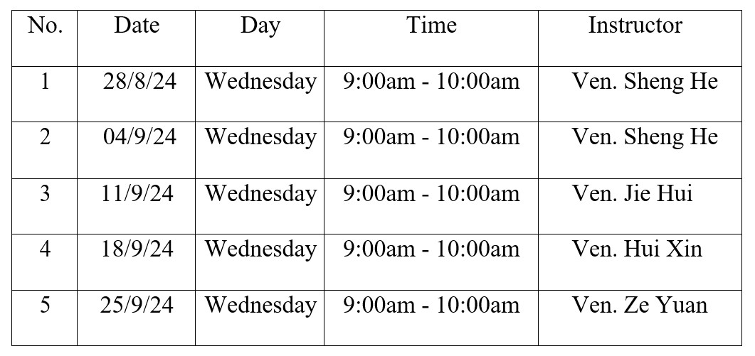 Chinese Class (28 August to 25 September, 2024)