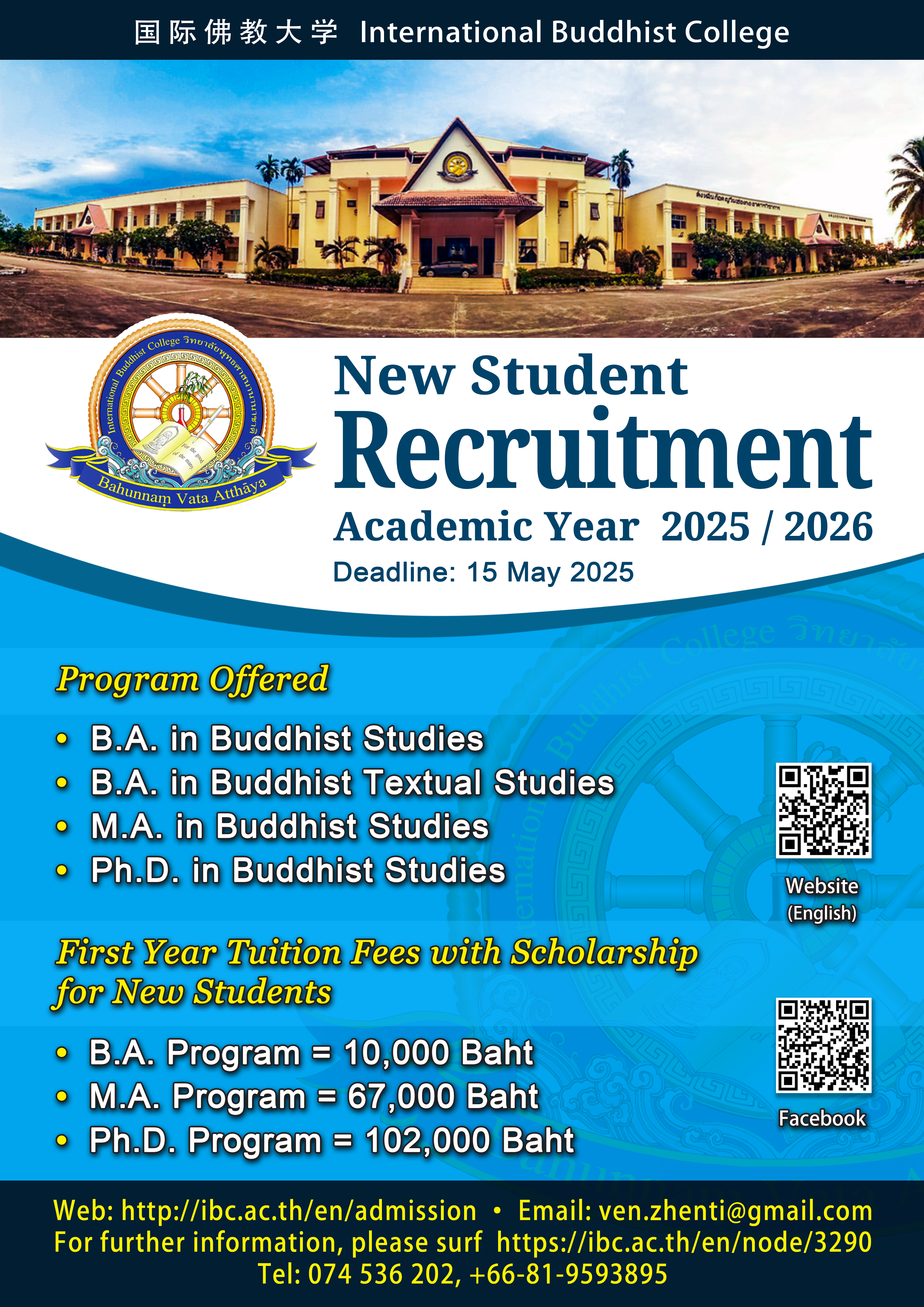 Application for B.A., M.A. and Ph.D. in Buddhist Studies are now open until 15th May, 2025.