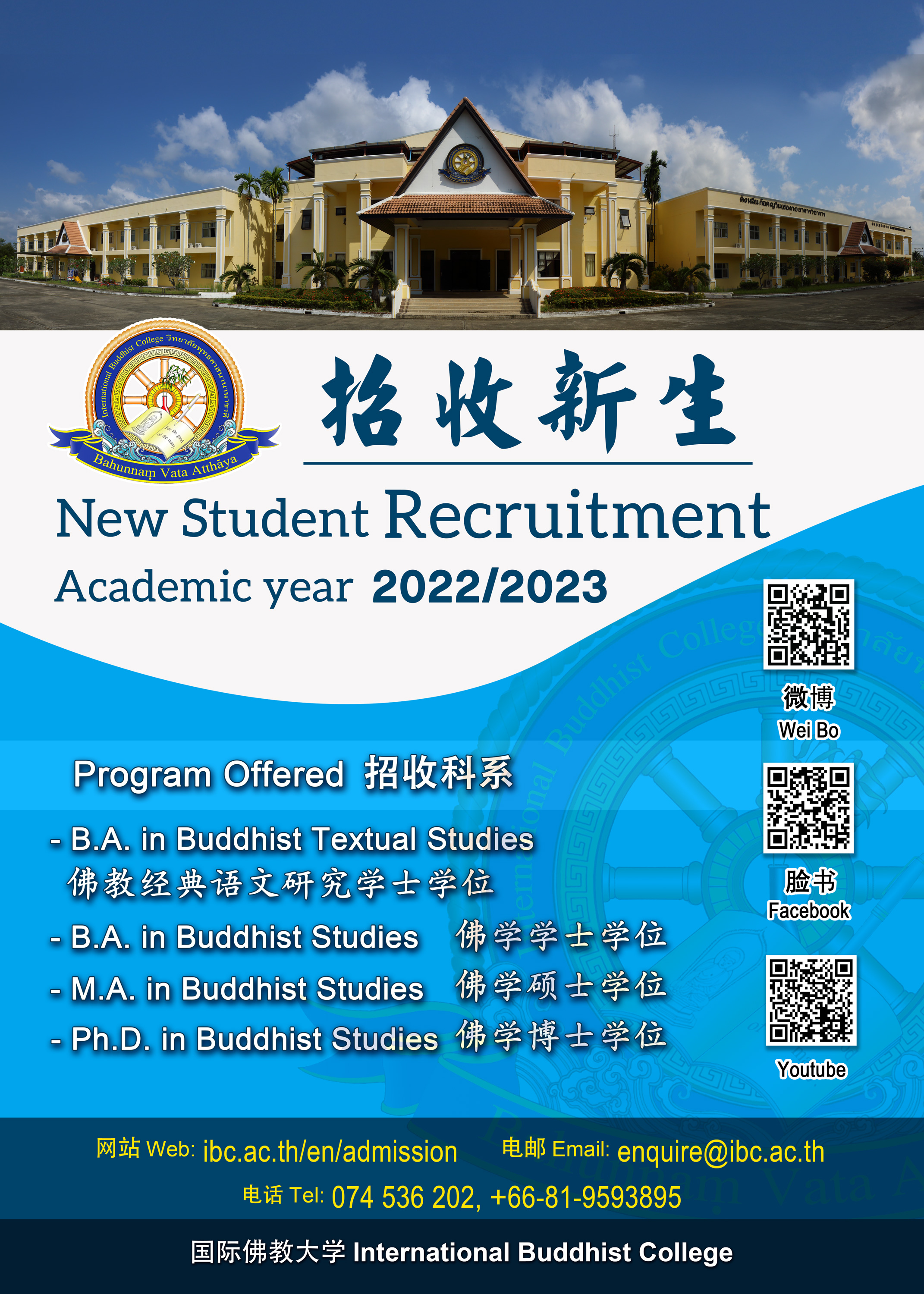 วิทยาลัยพุทธศาสนานานาชาติ เปิดรับสมัครนักศึกษาใหม่ ปีการศึกษา 2565