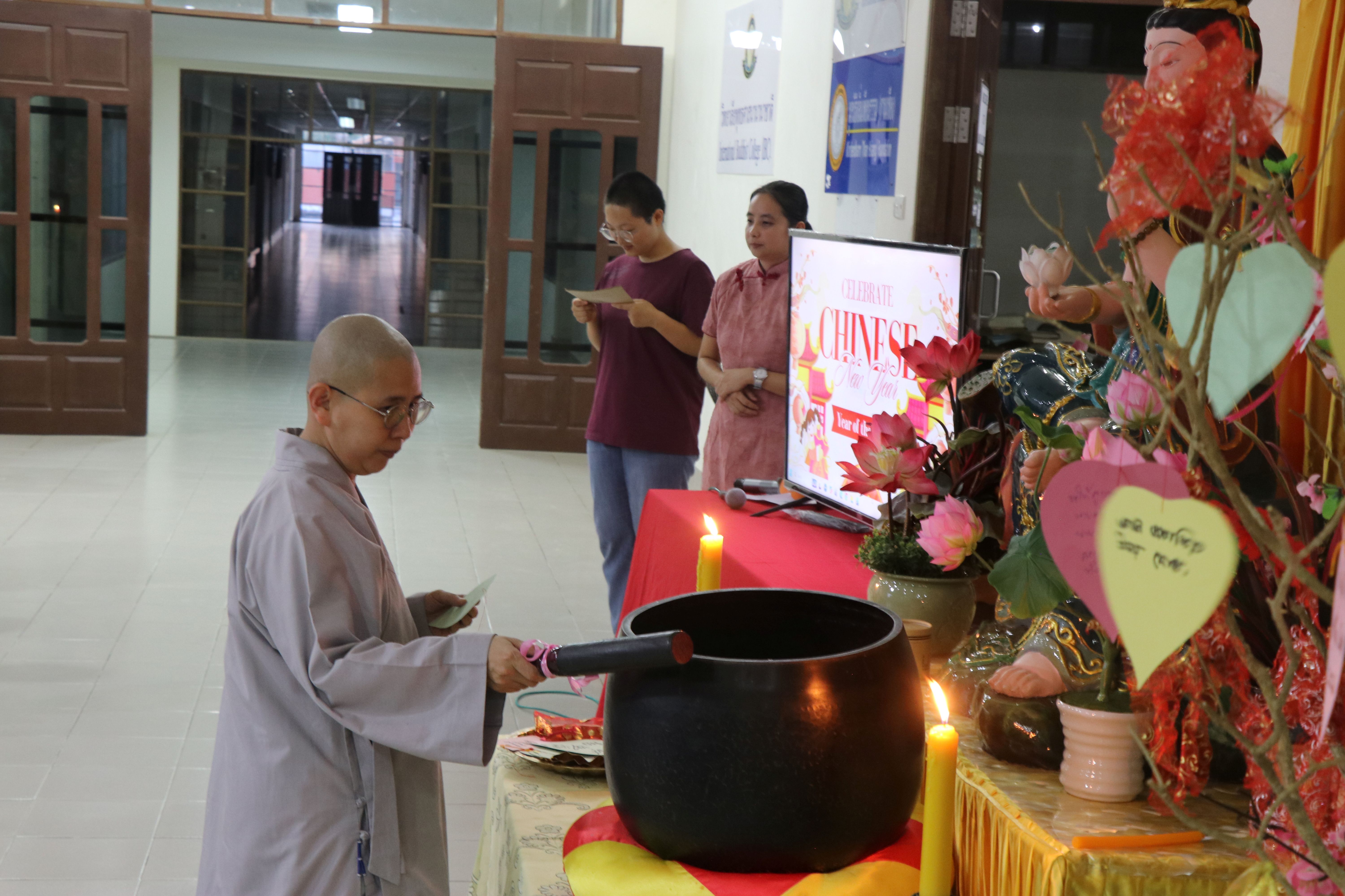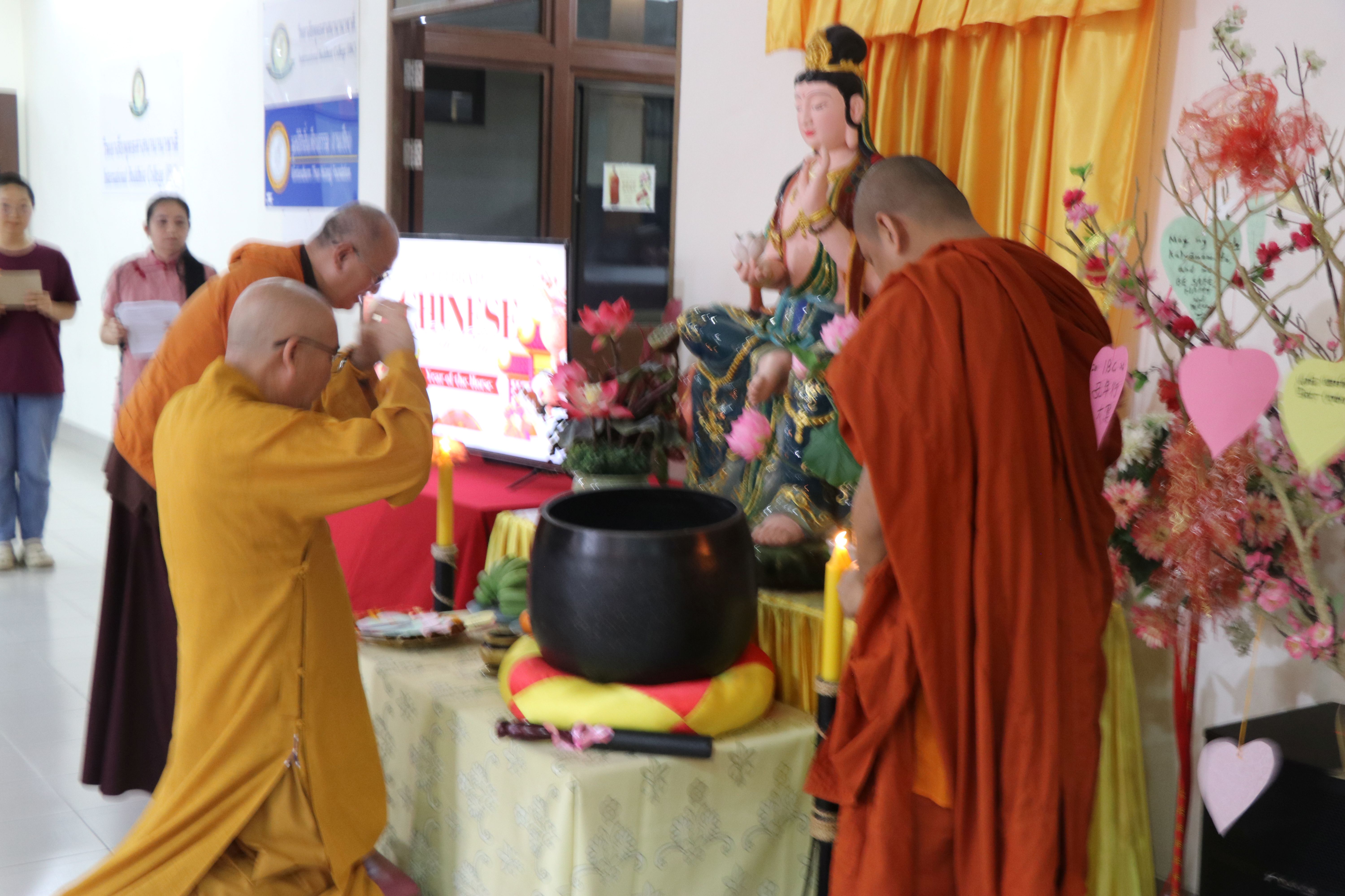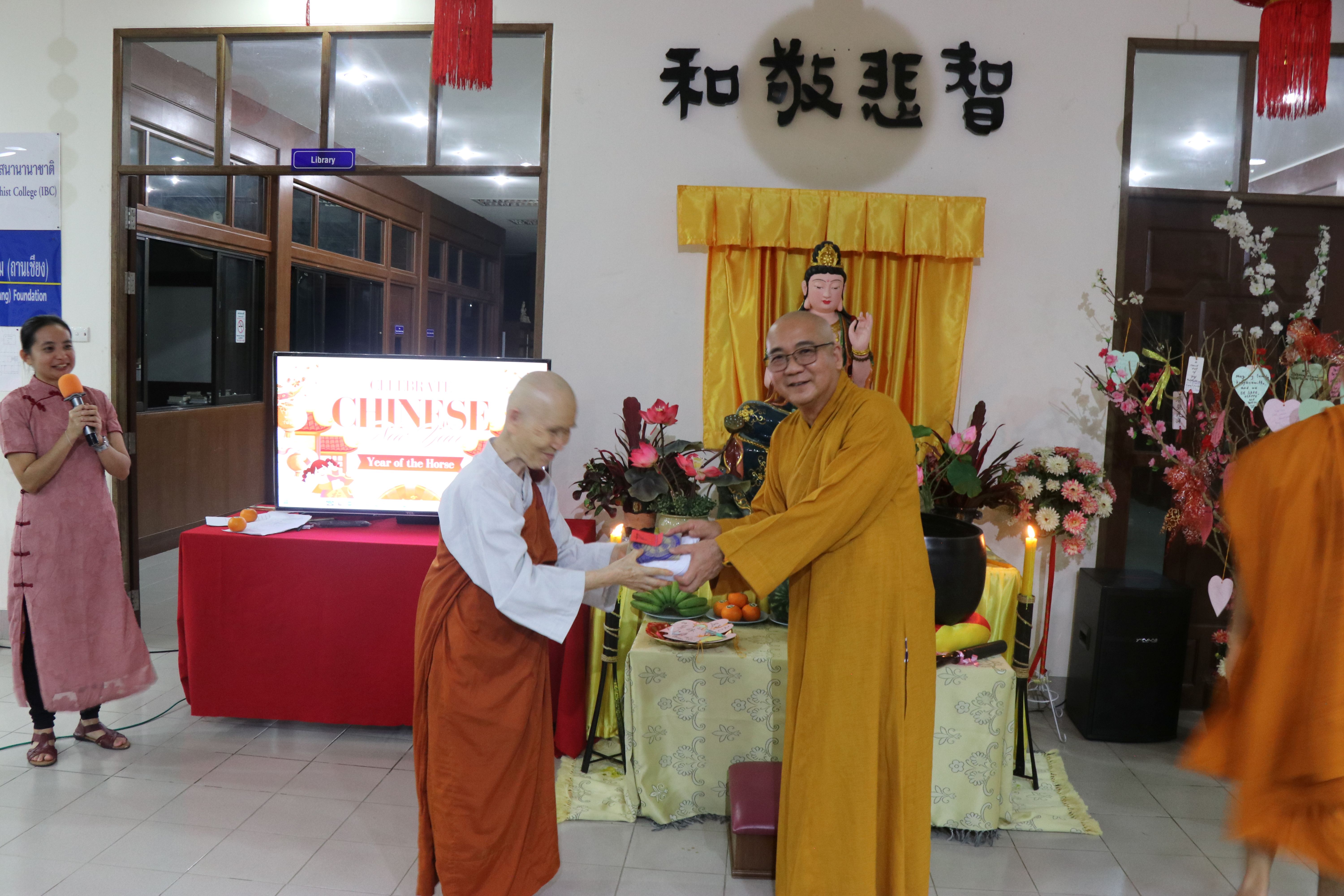 国际佛教大学于2月25日庆祝华人新年。活动开始时,上座部僧侣以巴利语诵经,礼敬三宝。随后,大学教务长办公室主任真升法师用中英文致开幕词。