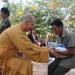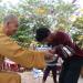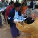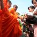 IBC, Oct 31, 2010: Eight Bhikkhu Samgha members get together at the center of district chanting suttas and giving dhamma talks to comfort the flood affected families. Water, rice and money were offered to the villagers.