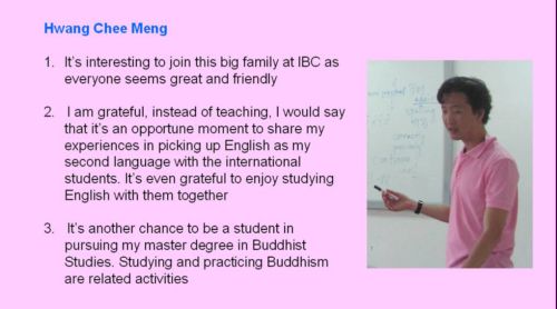( IBC August 13, 2008 ) After a month of classes, our new students would like to share their feelings as below :